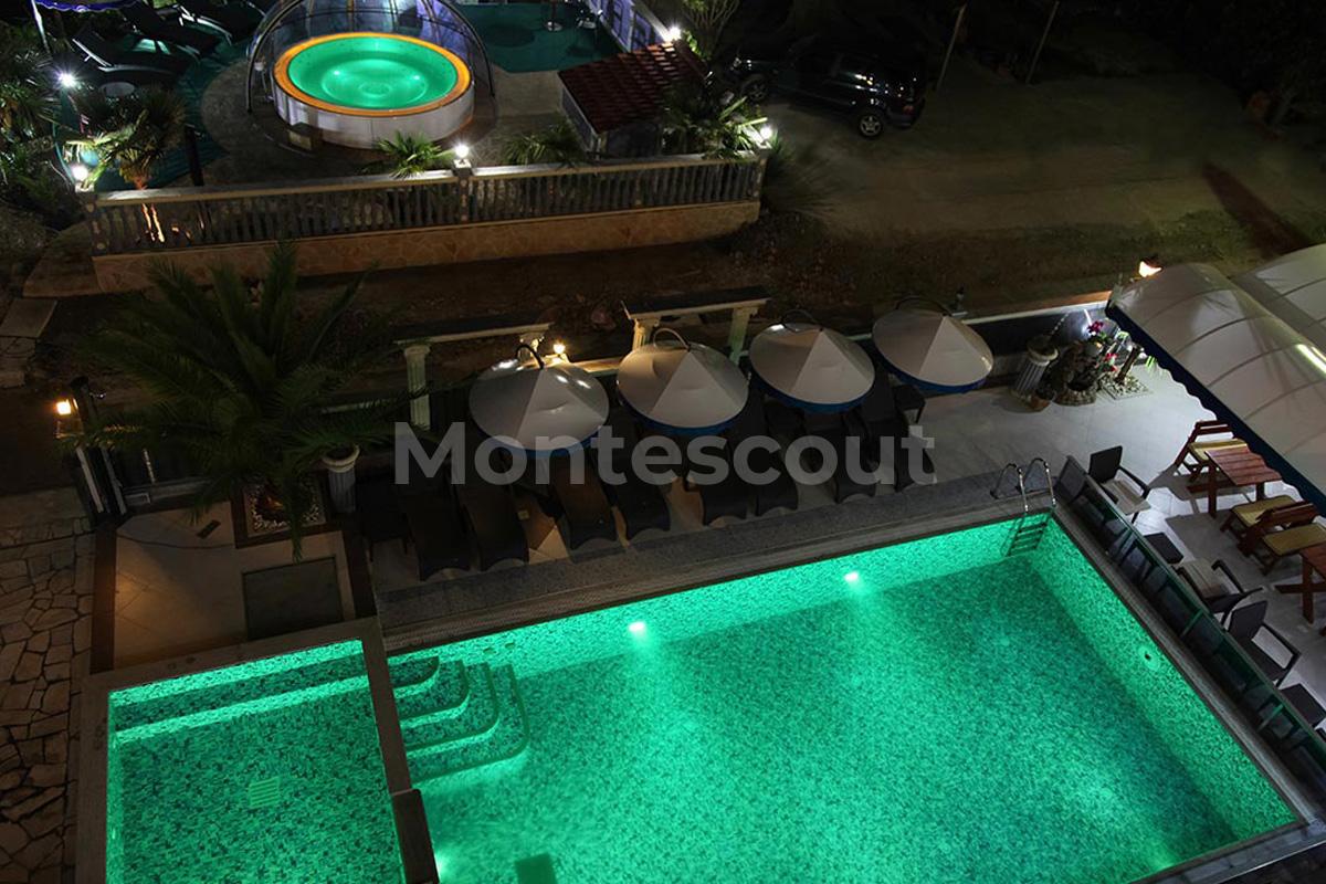 Spa Hotel inklusive Frühstück, großes Wohnzimmer auf 125m², Sauna, Pool, 24/7 Service das ganze Jahr über, Fußbodenheizung, Balkon, Terasse, großer Außenbereich, beheizbarer Innenpool und dem besten Service in Ulcinj. Wir sprechen deutsch, englisch, albanisch, polnisch und montenegrinisch. 1,7km zum Velika Plaza und beste Vernetzung zu Bäckerei, Supermärkte und Restaurants.