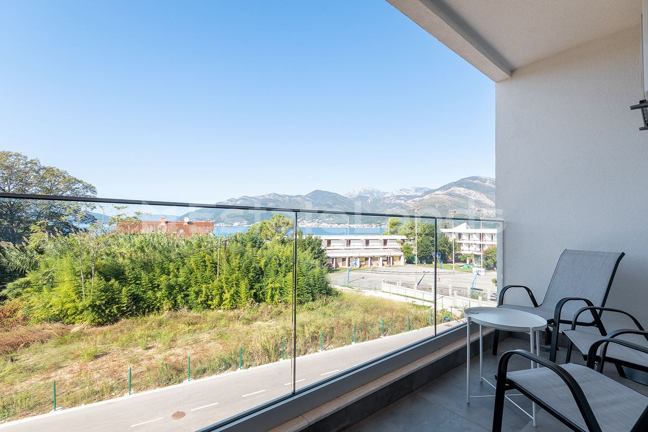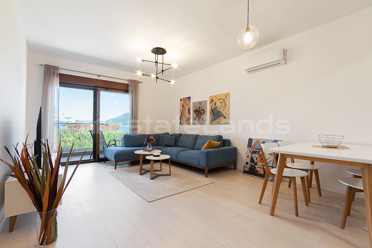 Two bedroom apartment for sale. Ideal location: 50 metres to the sea, 600 metres to Porto Montenegro, not on the mountain, quiet place away from the highway, easy access. The apartment has everything you need for life, sold with all furniture and appliances. Direct sea view from the terrace.