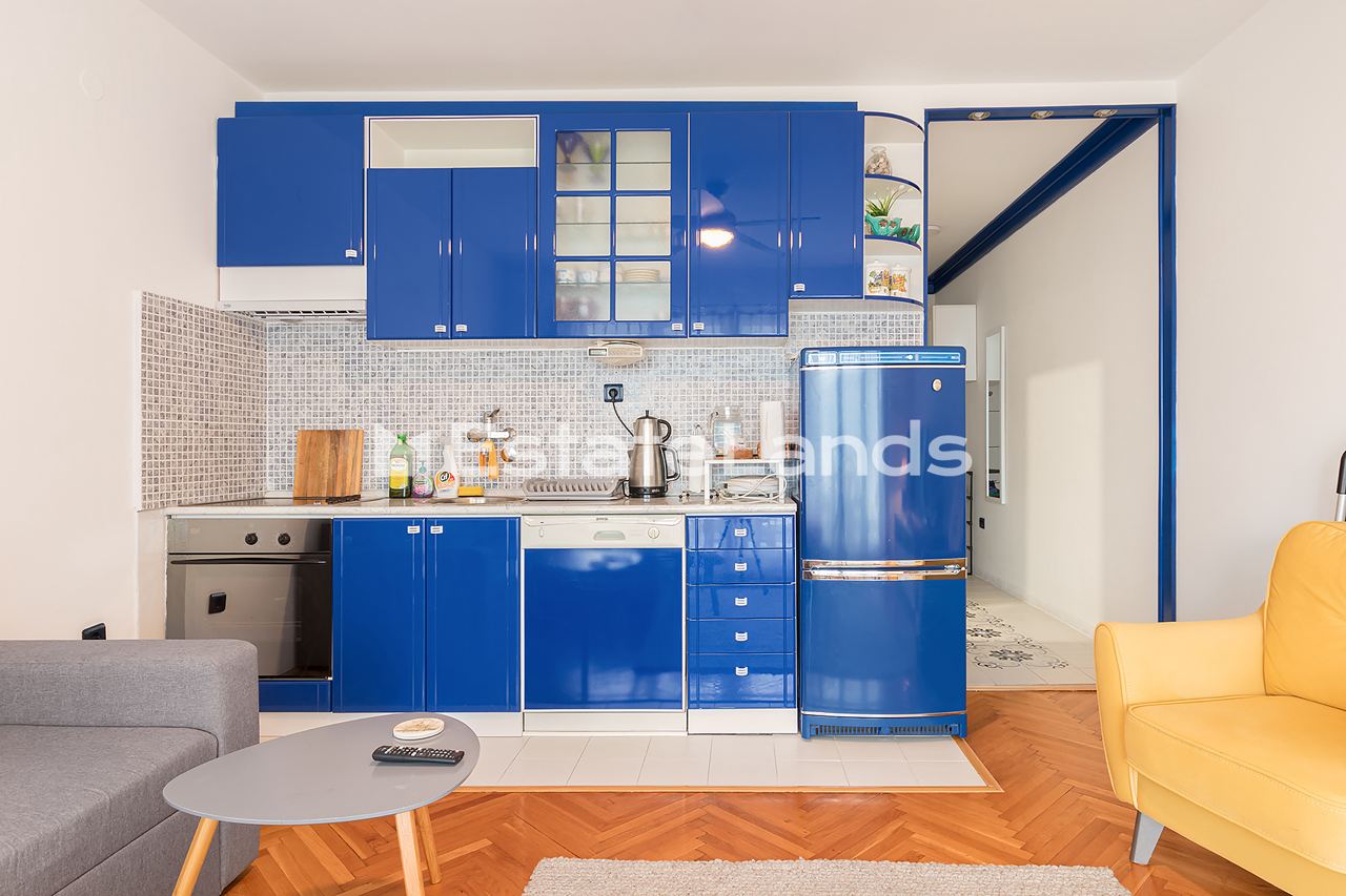 One bedroom flat for rent with stylish interior and spacious covered terrace with stunning views of Budva, sea, mountains and old town. Key features: - The flat is within walking distance to the old town, the beach and the centre of Budva - Spacious 12 m² veranda with dining area and postcard view - The flat has a garage space for 1 car and a storage room - In addition to the flat comes with a water tank for 8 tonnes in case of failure in the central water supply - Fully fitted kitchen and air conditioning in every room It is possible to conclude a notarised contract Can be with a cat Payment terms: - Utilities are paid separately